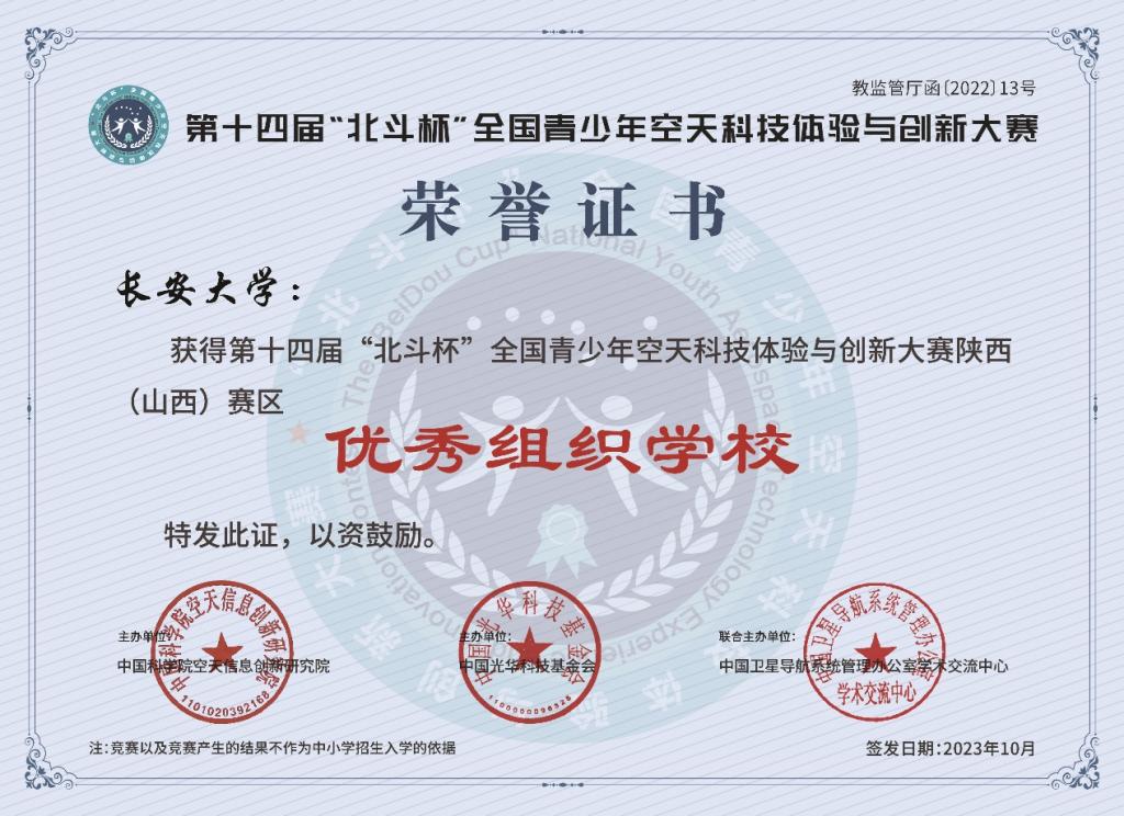 我校荣获第十四届“北斗杯”优秀组织学校