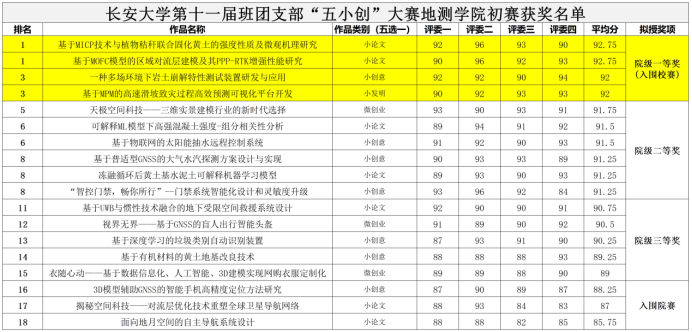 班团支部“五小创”赛事获奖队伍五小创院赛