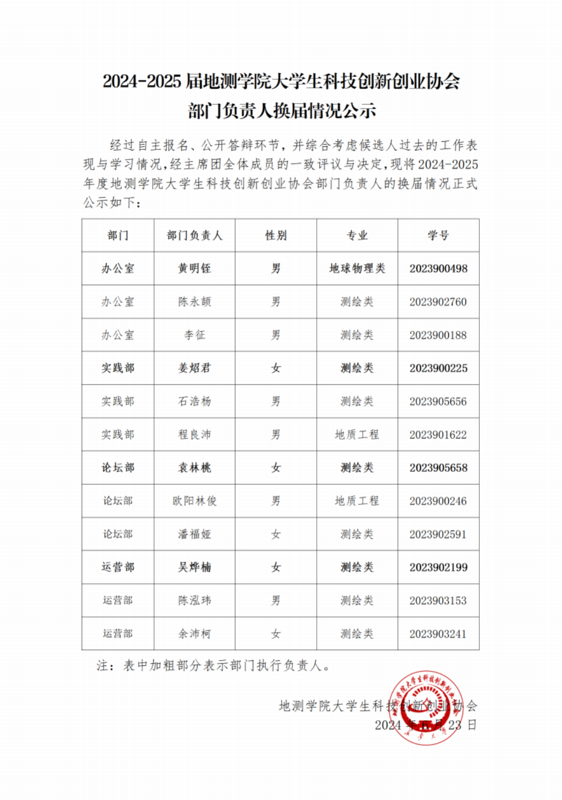 地测科协部门负责人换届情况公示