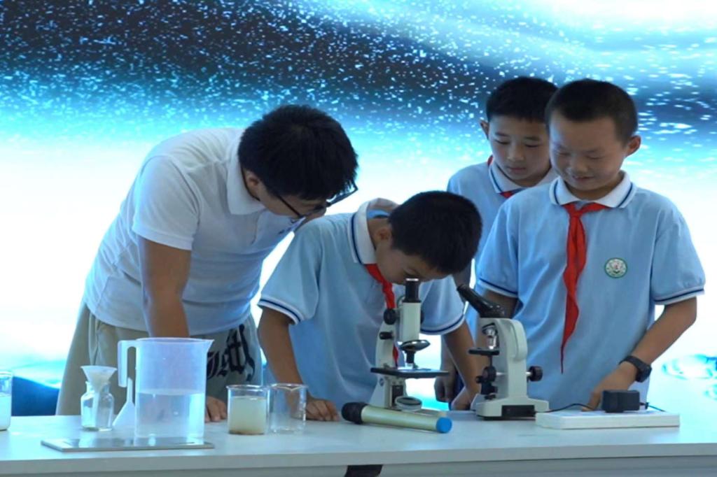 实践队员台下辅助完成实验