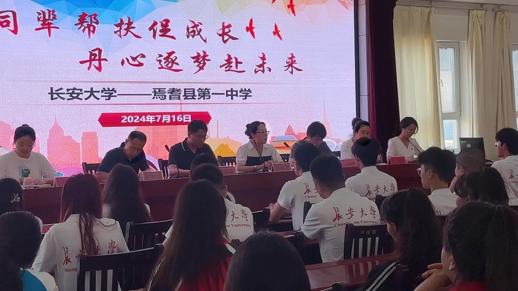赴新疆焉耆暑期支教社会实践队,于2024年7月16日9:30在焉耆县第一中学报告厅隆重举办“同辈帮扶促成长,丹心逐梦赴未来”开班仪式。本次开班仪式由焉耆一中团委副书记李慧主持,焉耆县第一中学副校长杨娅莉、焉耆一中教师代表年级组长叶忠玲等领导嘉宾、实践队指导老师史杨季及实践队全体同辈帮扶志愿者共同参会。