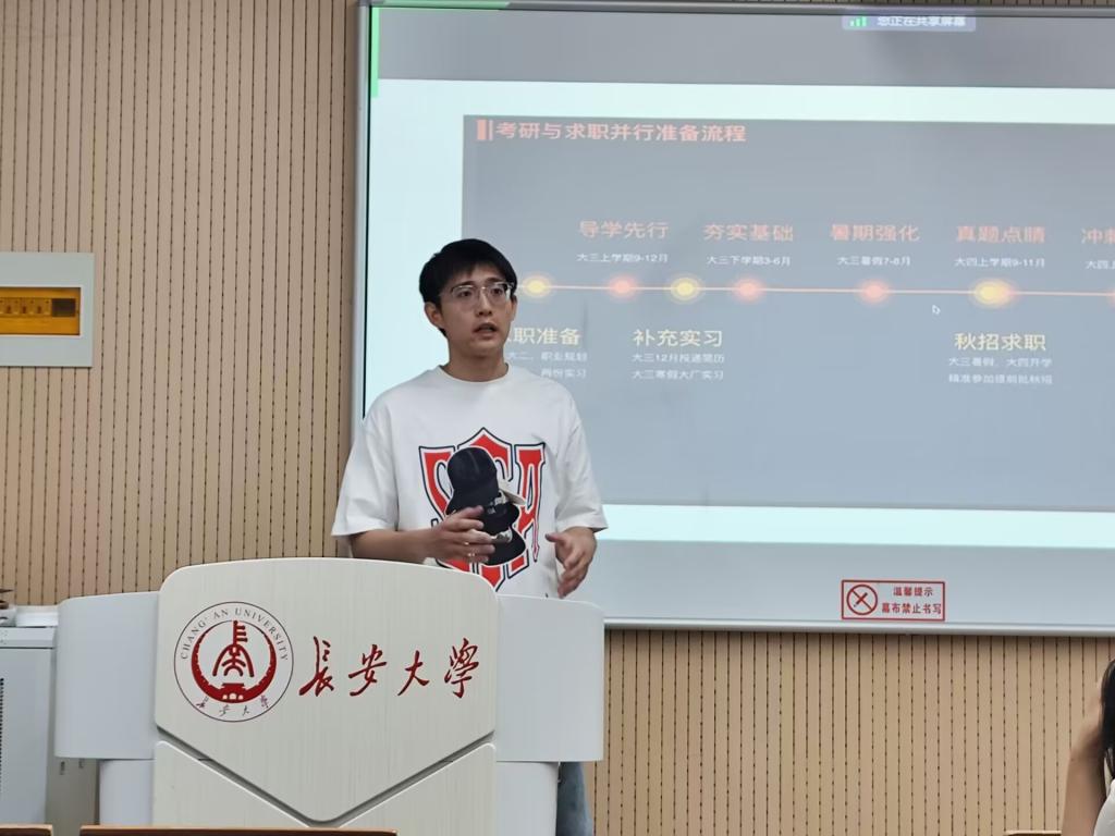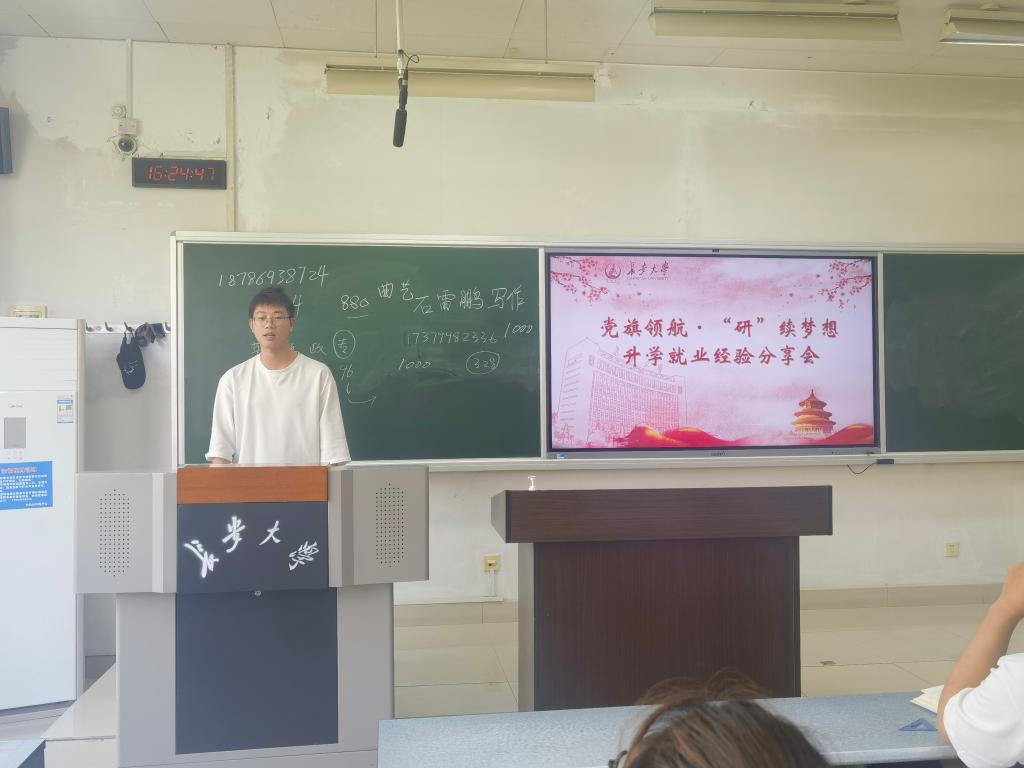 学生在大学期间的成长蜕变;举办“党旗领航、延续梦想”考研就业分享会,请优秀学长学姐分享他们在考研就业中的成功经验。