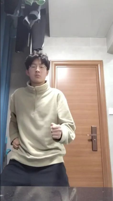 学生在宿舍对照分解动作练习风采