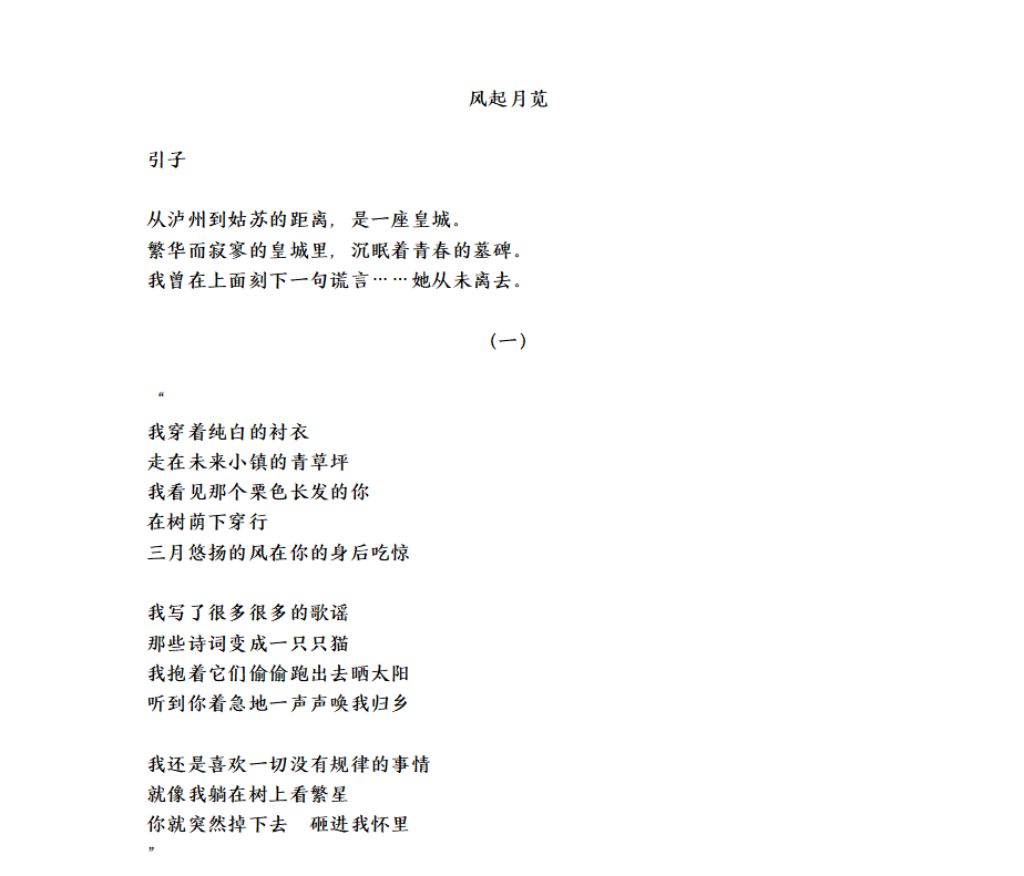 在见证现代诗在当代文坛的小有成功与肯定后,他继续磨砺着自己其他文学体裁的创作能力。2021年11月,他以笔名“尘风”发表散文《情怀与诗》《告白之夜》,凭借其标志性唯美细腻的文风入选《青春诗刊》“2021年度散文精选”,与多位大作家一同登刊,同时获赠其纸质刊物。笔下的文字与故事被美誉为“妖冶而不失素淡”“妩媚而不失纯洁”。