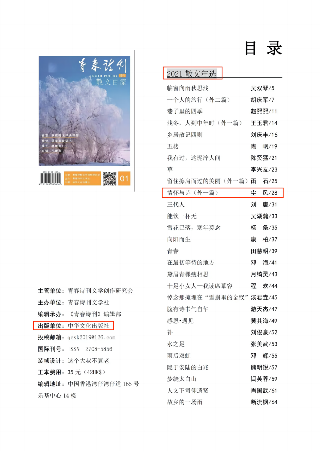 仅一名入选)。诗作《摆渡人》中的一句诗“远方除了遥远和你 / 一贫如洗”更是被选为该期经典名句。