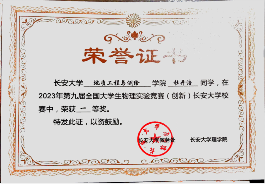 数学建模一等奖、第一届西北赛区物理实验竞赛省级二等奖等各类比赛奖项。