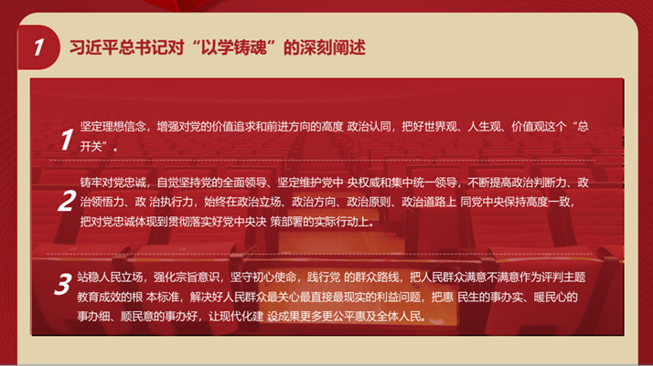 “以学铸魂”要求我们坚定理想信念,增强对党的价值追求和前进方向的高度政治认同,把好世界观、人生观、价值观这个“总开关”。