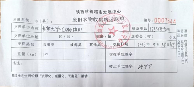 青年愿者服务队共同推出“爱为宝·废旧衣物回收再利用”活动。地测青志队设立帐篷点提供捐赠旧衣物平台,进行收集整合后移交陕西省慈善协会,发放给需要的群众。两期活动已顺利完结,共70多位同学参与,共收集100多公斤旧衣物。