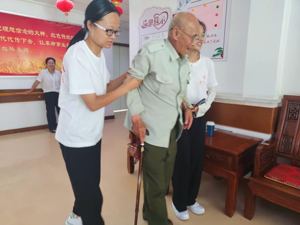 赴陕西延安“研学党的二十大·重温赓续延安情”暑期社会实践队前往“八一敬老院”拜访了敬老院的老人们,同时与革命战士同景飞老人进行了深入的交流。