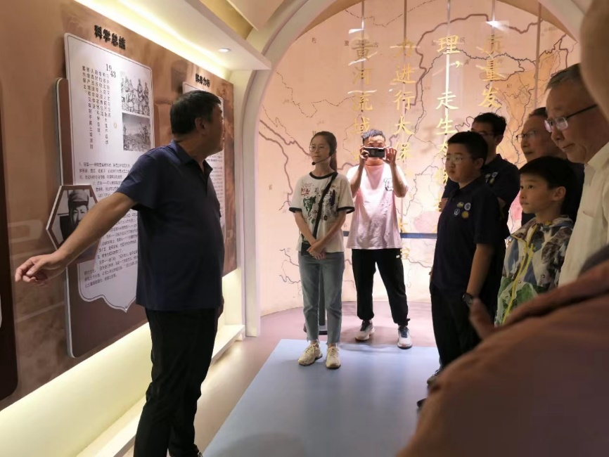 实践队第二站前往辛店沟水土保持示范园,实践队员在黄河水利委员会工作人员的带领下,先后参观了园区水土保持文化展厅、“三道防线”小流域综合治理模式、小石沟气象园、柔性溢洪道试验坝、育林沟水土流失规律观测径流小区,并现场就水土保持与生态环境建设高质量发展进行了深入交流与讨论。