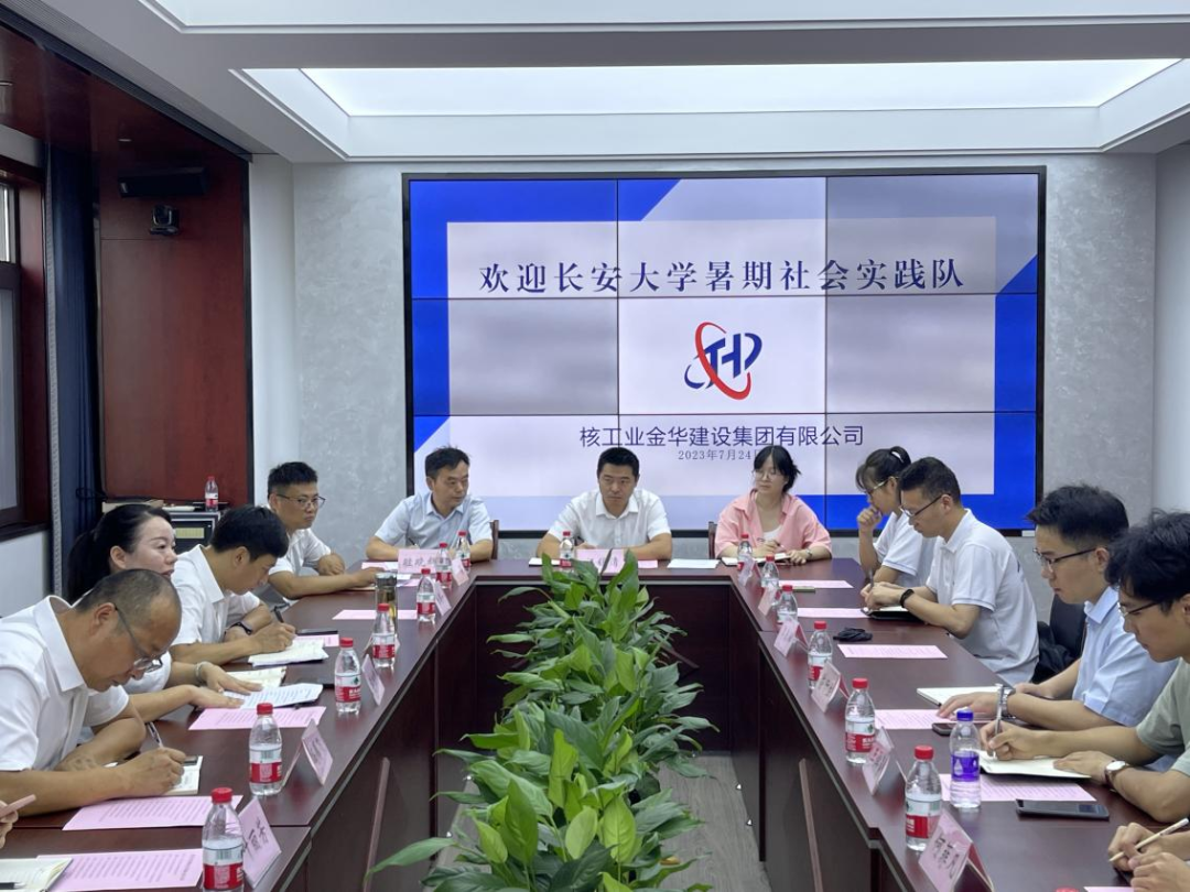 暑期实践队一行人来到金华核工业建设集团(简称核金建设集团)洽谈校企合作事项。