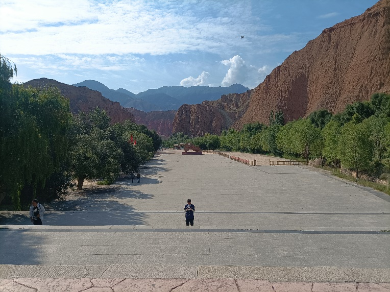 实践队一行首先抵达贵德国家地质公园。贵德国家地质公园以:“地脉绵延根在地,人缘千古情为源”为内涵,以“七彩峰丛、轩辕后土”为主题构建。公园内的女娲峡、千佛峡、通天峡等都是世界上罕见的自然奇观,科考队王祚鹏老师结合青海省地质图对地质公园的构造背景进行详细的讲解。另外,实践队杜建涛博士操控无人机从空中查看地质公园的地形和地貌。贵德国家地质公园作为中国地质公园体系中的瑰宝,不仅展现了壮丽的地质景观,更将生态保护与高质量发展深刻的融入其中。