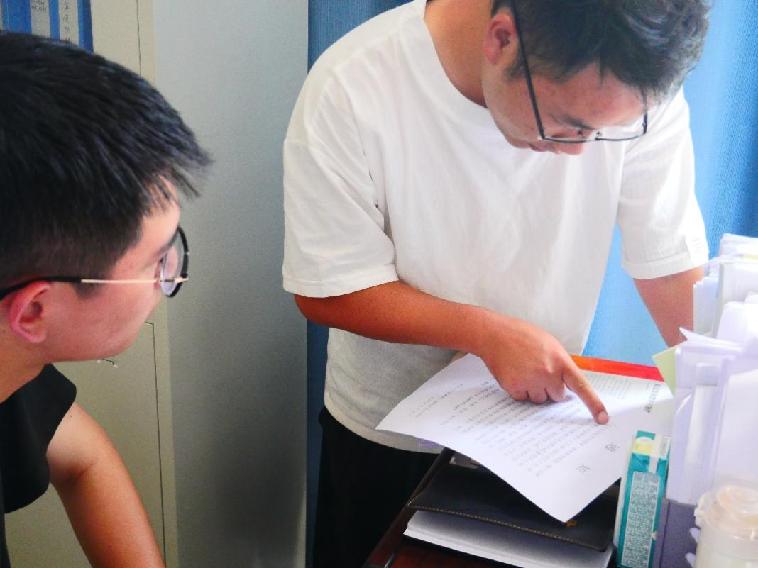 上午8时30分,部分实践队员开始进行招生宣传单、招生表以及安全责任书的编写和打印工作。