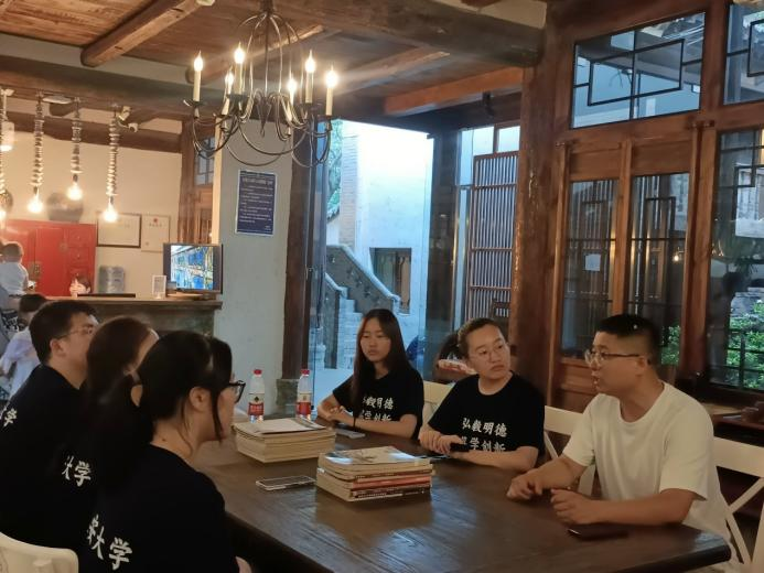 下午,实践队邀请到袁家村返乡青年、“乡村生活家”发起人之一的郭奔先生就袁家村的发展历程、发展方向以及非遗文化保护等方面进行了交流。在交流过程中,实践队员各抒己见,不仅分享了各自在实践过程中的所见所闻与感悟体会,还讲出了目前仍存在的一些困惑。郭奔先生对实践队深入乡村,实地调研乡村振兴的初心表示赞许,同时也对实践队员的问题一一做了解答。
