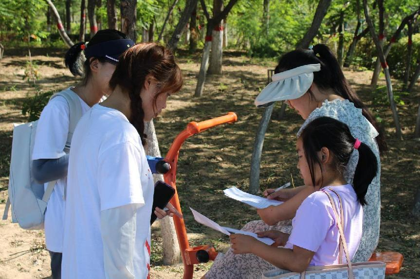 赴陕西米脂“绿荫黄土山河富,杂粮铺起振兴路”暑期社会实践队来到米脂县貂蝉公园附近为市民进行环保理论宣讲,并在无定河流域开展了净滩行动,为文明城市贡献一份力量。