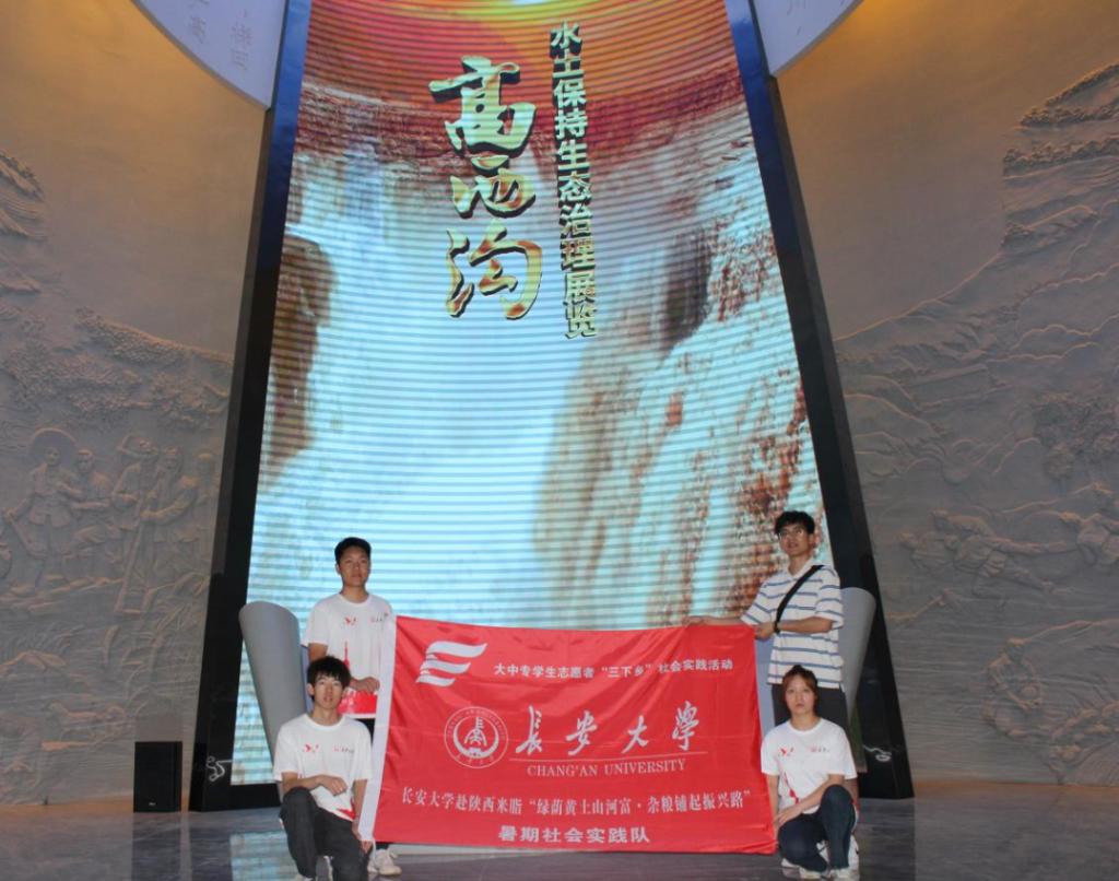 来到高西沟村的第一站,实践队员们选择去参观水保生态教育基地。在千秋大计厅,实践队员们了解到,黄土高原位于黄河的中上游地区,是全世界最大的黄土分布区,也是我国水土流失最严重的区域。由于黄河携带大量的泥沙,使得黄河下游形成了地上河的现象,导致了千年的黄河水患。高西沟村地处黄土高原丘陵沟壑区腹地,域内地形破碎,沟壑纵横。自古以来该地自然环境恶劣,水土流失严重,灾害频发,十种九不收,这与如今高西沟村绿水青山,硕果累累的景象截然不同。那么沟壑纵横的黄土高原是如何变成山清水秀的“塞上好江南”呢?实践队员们在治理之路厅和红色堡垒厅找到了答案。
