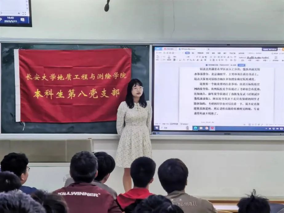 活动伊始,党委副书记潘迎介绍了此次主题党日活动的渊源、筹备和意义,并重点针对目前全党开展的主题教育进行了动员、安排与部署。随后,支部毕业生党员赵海峰、王智博、徐玉涵和边子策进行保研和考研经验分享。