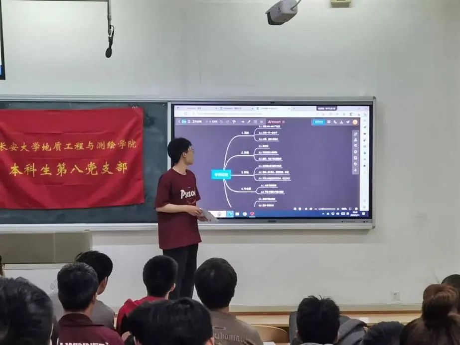 本科生第八党支部于5月11日在鸿远2302教室开展党旗领航·“研”续梦想主题党日活动。学院党委副书记潘迎以普通党员身份参加此次活动,活动由党支部书记余智勇主持。