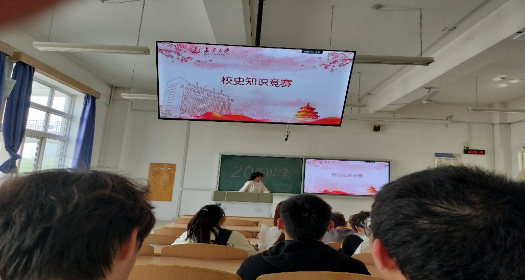 随后,班长田宏涛和团支书潘雨婷以线上答题的形式举行了校史知识竞赛活动,班级同学们积极参加,踊跃比赛。通过此次竞赛,增强了同学们爱校荣校意识,加深了同学们对校史校情的了解。