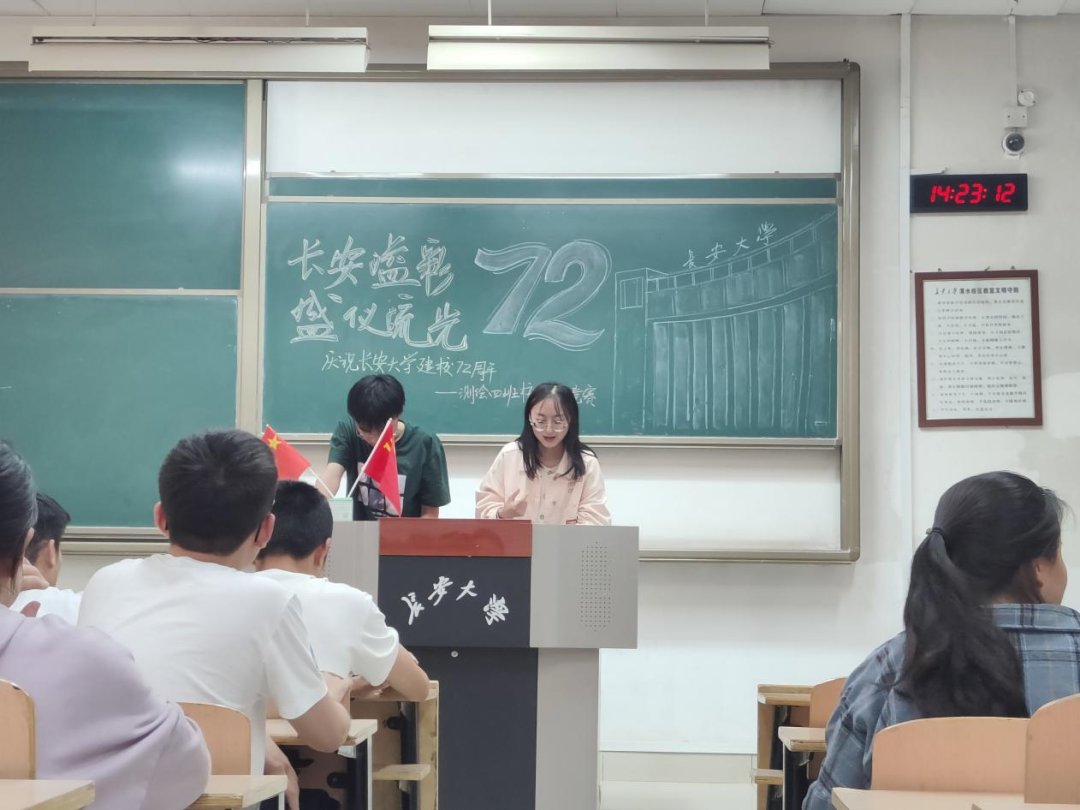 2022级测绘类404班于4月18日14:00在明远1105组织开展了“长安溢彩 盛仪流光”校史知识竞赛活动。此次活动由赵锦文和叶良平主持,全体班级同学参与其中。