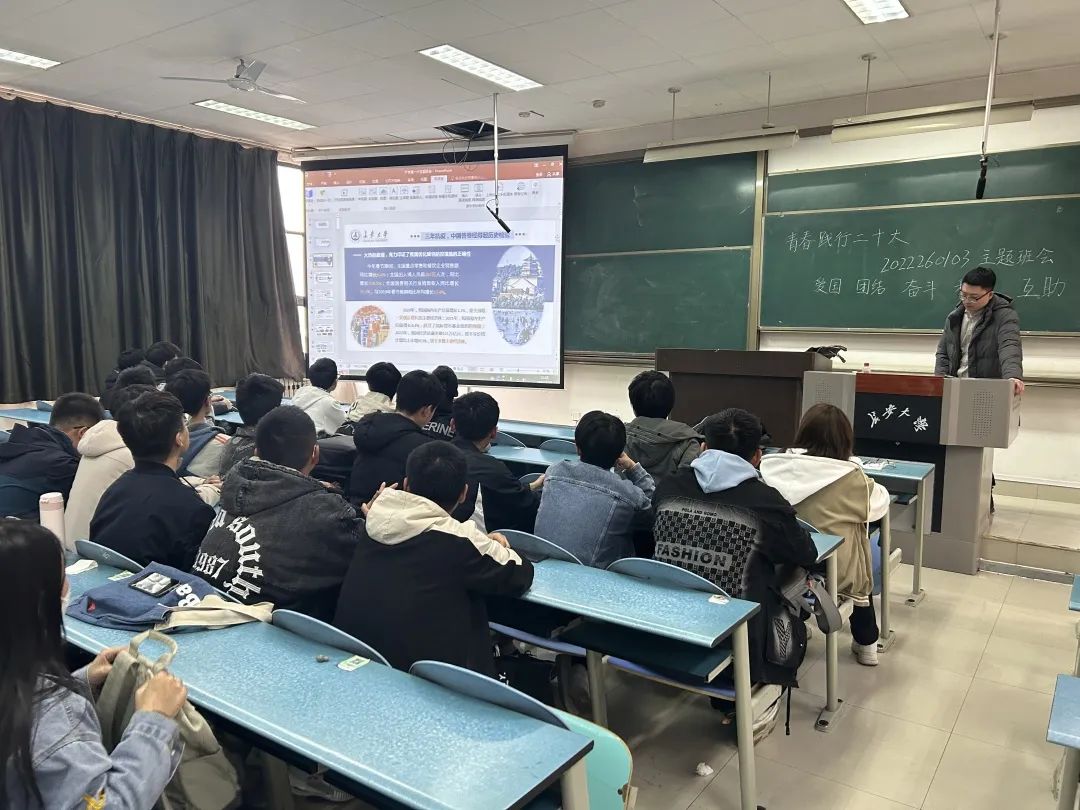 2022级各班组织召开了“青春践行党的二十大”主题班会,学院党委副书记潘迎、各班班主任、辅导员和班级全体成员参加了本次班会。