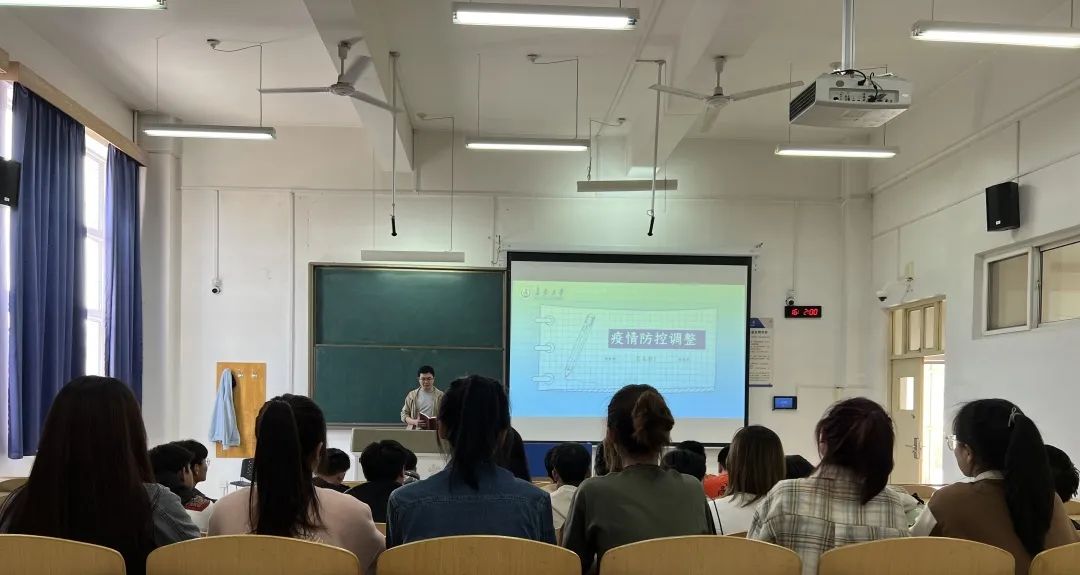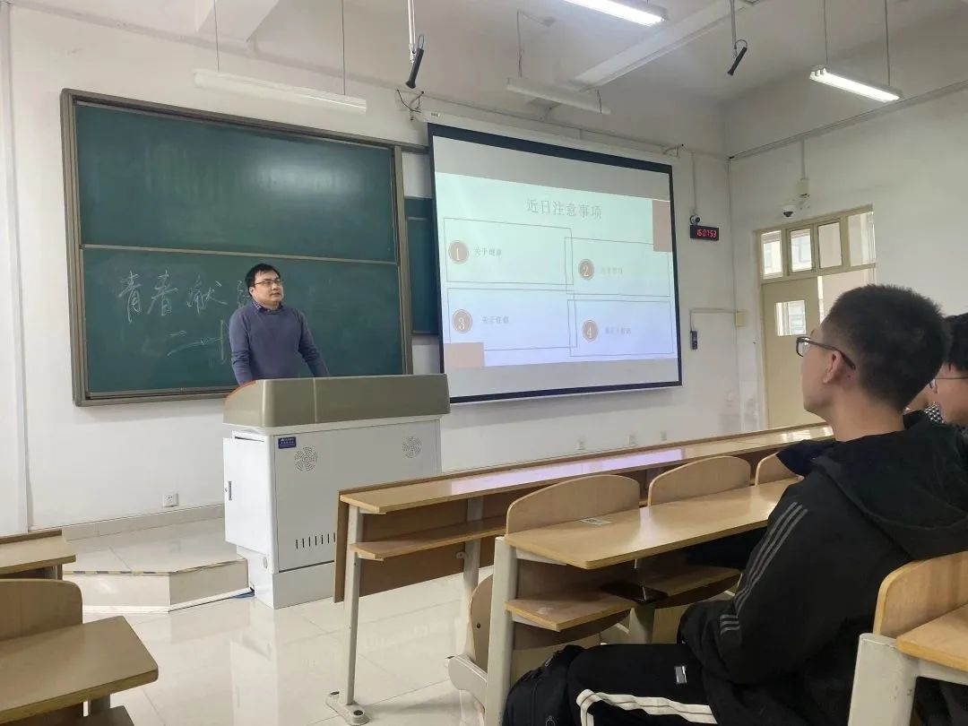 在安全卫生教育方面,辅导员韩树鹏通过数据向同学们展示了我国在疫情防控方面取得的伟大成就,教育引导同学们落实自己是健康第一责任人理念,做好个人防护。同时就防火防盗、防不良网贷、防电信诈骗等方面加强教育引导,提醒同学们提高安全意识,看好个人钱袋子。