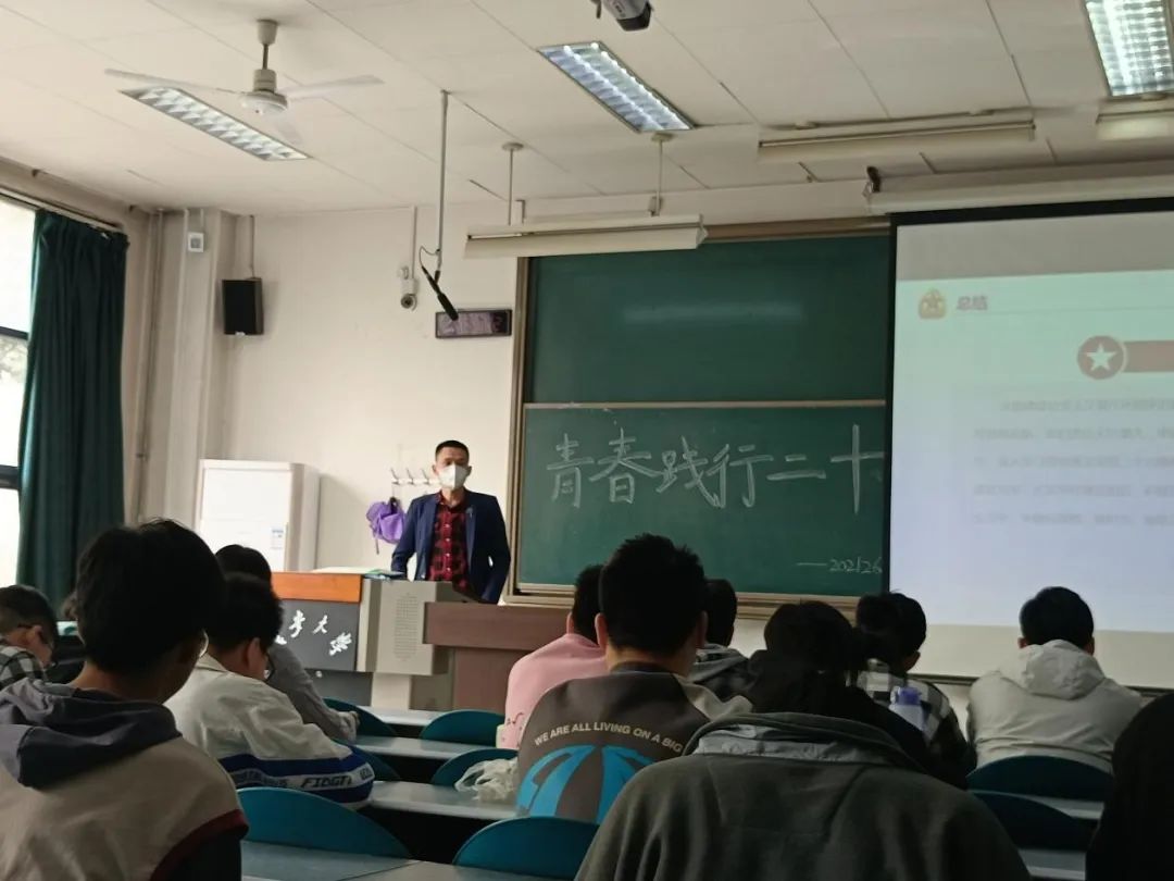 渭水校区明远教学楼1205教室召开。班会旨在分享交流党的二十大精神学习心得,激励青年学生脚踏实地、埋头苦干,努力把宏伟目标变成美好现实,为学校“双一流”建设、国家富强、民族复兴与人民幸福做出切实贡献。班主任孙巍锋老师与102班全体学生参加了此次会议,会议由班长花欲燃与团支书董双洋共同主持。本次班会共分为四个部分:(1)师生共唱《团歌》;(2)师生学习党的二十大报告;(3)党的二十大精神学习心得交流与个人自省;(4)班主任点评总结。通过师生共唱《团歌》,让同学们更加清楚地明白作为青年一代应该继往开来,努力拼搏,成为国之栋梁。通过师生共同学习党的二十大报告,让同学们更加清楚地明白自己生逢其时,应当坚定不移听党话、跟党走,怀抱梦想又脚踏实地,敢想敢为又善作善成,立志做有理想、敢担当、能吃苦、肯奋斗的新时代好青年,让青春在全面建设社会主义现代化国家的火热实践中绽放绚丽之花。最后,孙老师告诫同学们务必要说到做到,充分汲取党的二十大报告中的伟大建党精神、钉钉子精神、历史自觉与主动精神、斗争精神、劳动精神、奋斗精神、奉献精神、创造精神、勤俭节约精神、战斗精神等重要精神力量,改掉之前学习生活中存在的坏习惯,继续保持优良的学风和生活习惯,珍惜韶华并做提前好未来职业规划,将个人成长发展的小目标融入学校与国家发展的大蓝图去中,在不断奋斗中实现个人价值和社会价值的统一。本次班会取得圆满成功。相信同学们定会用党的二十大精神时刻武装自己,在以后的学生生活中更加努力拼搏、锐意进取。