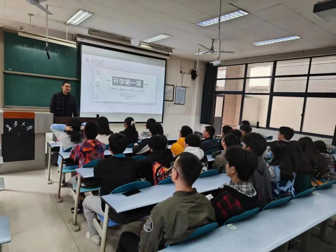 2021260402班班主任王晨、2021级辅导员杨海城及402班全体同学在渭水校区参加了“开学第一课”主题班会。本次班会由杨海城老师主持。