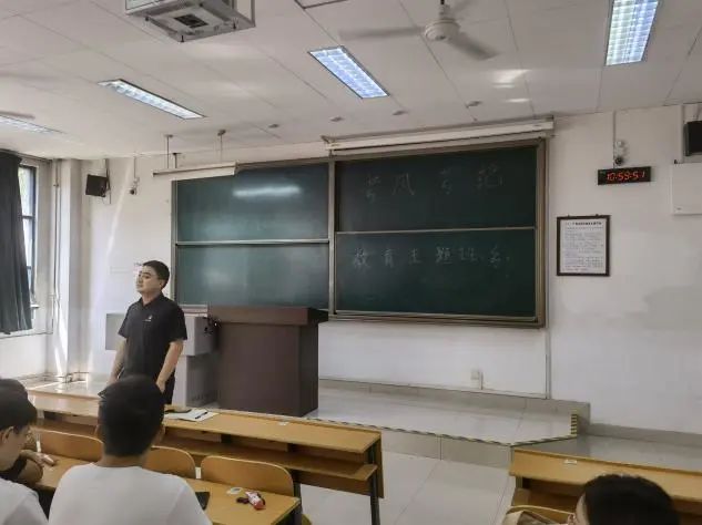 2021260407班于渭水校区WM1213教室召开考风考纪教育主题班会,本次班会由2021级辅导员杨海城主持,2021260407班全体同学参加。