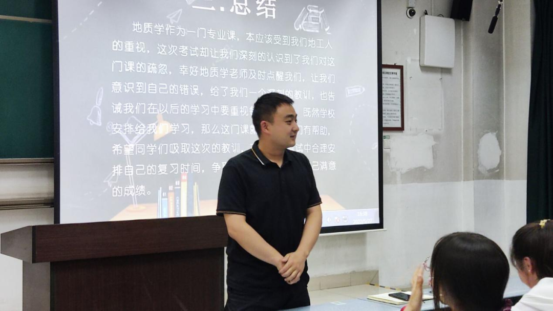 紧接着,班主任朱兴华老师通过对班级成绩的分析,指出学生和老师之间缺少沟通。他表示老师和同学应该积极沟通教学和学习过程中出现的一些问题,鼓励同学们主动和老师进行交流。