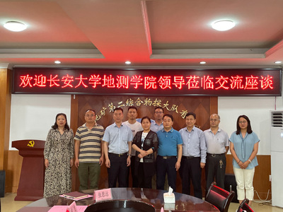 党委副书记、副院长荆琳,副院长邵广周,地球物理系主任包乾宗,副系主任纪新林,学工办副主任段少帅和辅导员杨雪菲赴陕西地矿第二综合物探大队有限公司走访调研。陕西地矿第二综合物探大队有限公司党委书记、执行董事、总经理刘治国,党委副书记、工会主席楚红,党委委员、副总经理杨宏昌,副总经理郑向光、党委委员、纪委书记拓伟,副总经理徐龙和总工程师牛峥等人参加座谈交流。