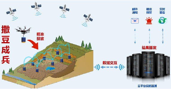 空间定位与灾害监测研究所建立了一套无人机投放式北斗滑坡监测预警系统,实现高危滑坡场景下的安全快速部署、实时高精度监测和准确可靠预警。目前,团队已基于本系统先后成功预警4次突发性黄土滑坡,有效地保障了人民群众的生命与财产安全,相关研究成果多次被央视新闻联播、人民日报等媒体报道。