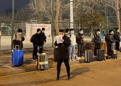 辅导员杨海城在清点转运学生名单