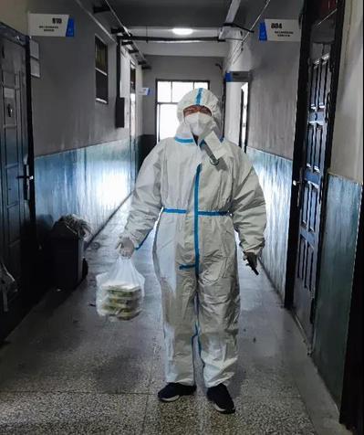 地质工程系刘聪老师,自16日起加入南校区东院的抗疫志愿者队伍,成为了2号教学楼的楼长,帮助滞留老师去食堂取饭、分餐。刘老师说:“感谢学校、学院的领导对被隔离的每一个人的关心,戴宏书记经常关注我们的状态,鼓励我们,并希望我们能做点力所能及的事。我觉得作为一个党员,一个高校老师,能在疫情期间,做一些力所能及的事情,对战胜疫情出点力,是一件非常有意义的事。我愿意继续为战胜疫情做出自己的努力。”