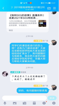 在主题班会随后的日子里,邵广周老师在班级QQ群中随时关注同学们的状态,随时反馈同学们提出的问题。同学们,让我们一路同行,共同抗击疫情,胜利一定会属于我们。