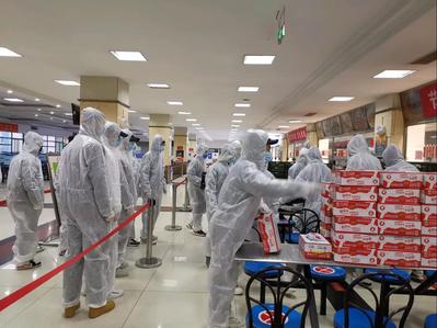 志愿者搬运食物