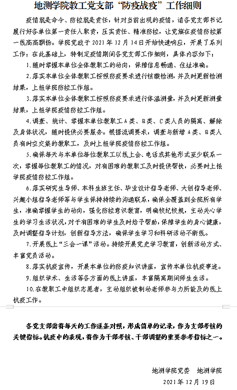 3.请各部门认真执行学校疫情防控预案,确保全体师生健康。
