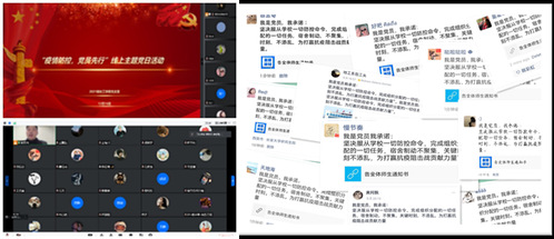 各党支部以线上平台为依托,积极开展《告全体师生通知书》线上主题学习、“抗击疫情,党员先行”、“共抗疫情显担当,爱国力行发奋强”、“星火传爱,砥砺战疫”、“凝聚青春力量·齐心共战疫情”等系列主题活动,发挥青春力量,为长大发声、为战疫助力。