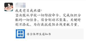 疫情就是命令,防控就是责任。老师、党员、团员、学生干部、志愿者们冲锋在前,切实扛起了疫情防控之责,构筑铜墙铁壁。