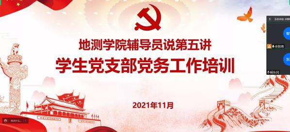 于2021年11月16日上午在学院小会议室组织开展了学生党支部党务工作培训会,院党委副书记潘迎同志与学工办全体辅导员通过线上线下结合的方式参加了会议,此次培训会的主讲人为本科生辅导员余智勇。