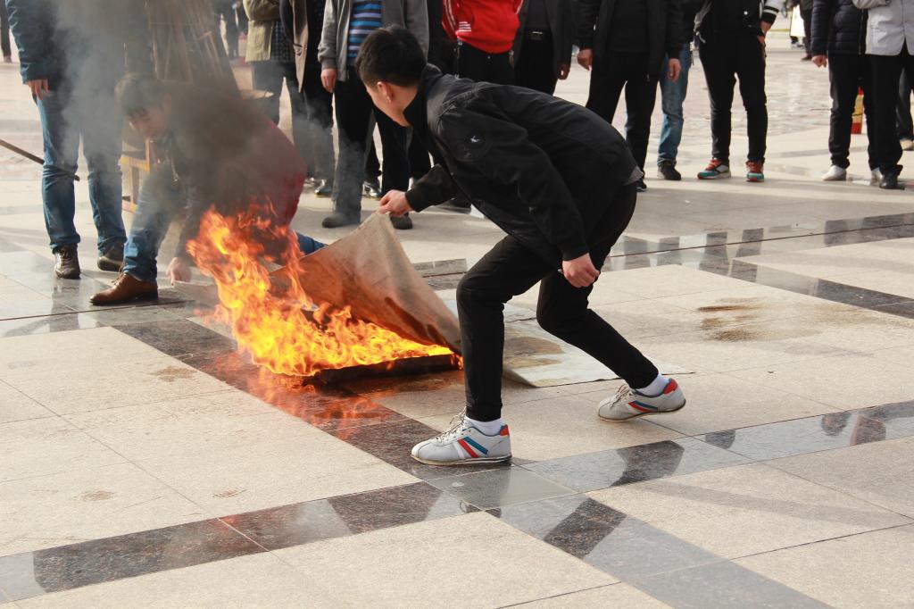 下午14:30,灭火技能演练活动如火如荼的展开。同学们在仔细听了演练负责人对于有关火灾现场的应急处置方案、灭火器的使用原理及相关注意事项的讲解,并观看了他们的演练后,亲自体验了一次现场灭火的过程,面对熊熊燃烧的火堆,他们的表现十分沉着冷静,熟练地按照灭火的步骤和方法,迅速将浓浓大火扑灭。最后,所有人员在引导人员的指挥下依次离开演习场地。