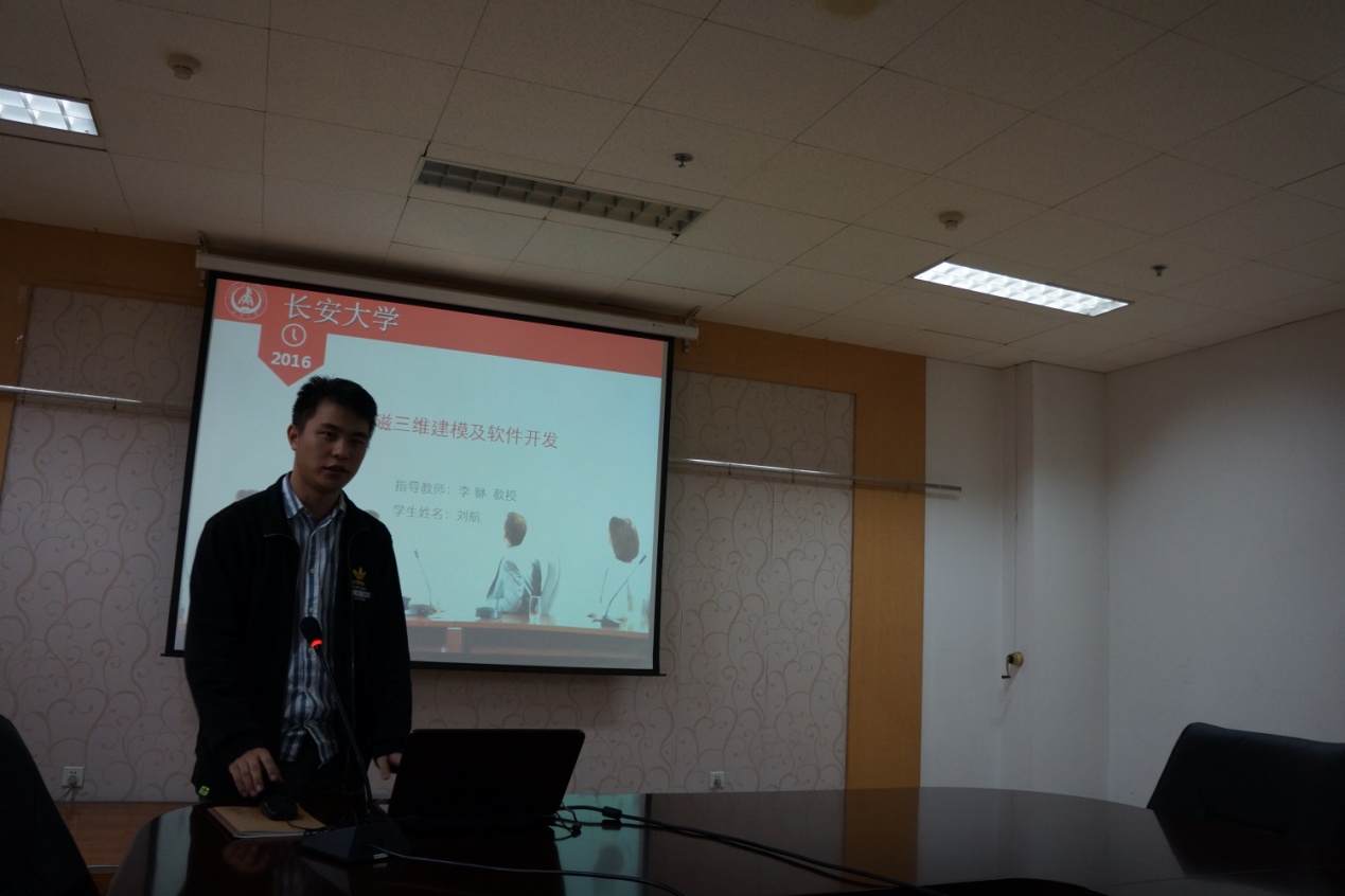 会上硕士研究生刘航、邓宇同学分别作了题为“瞬变电磁三维建模及软件开发”和“基于有限元的核磁共振三维正演研究”的学术报告。两位同学结合自己的所学所思,与大家分享了自己的学术成果和学术观点,理论丰富、观点新颖,获得了同学们的认可和掌声。现场交流、探讨十分热烈,学术氛围非常浓厚。
