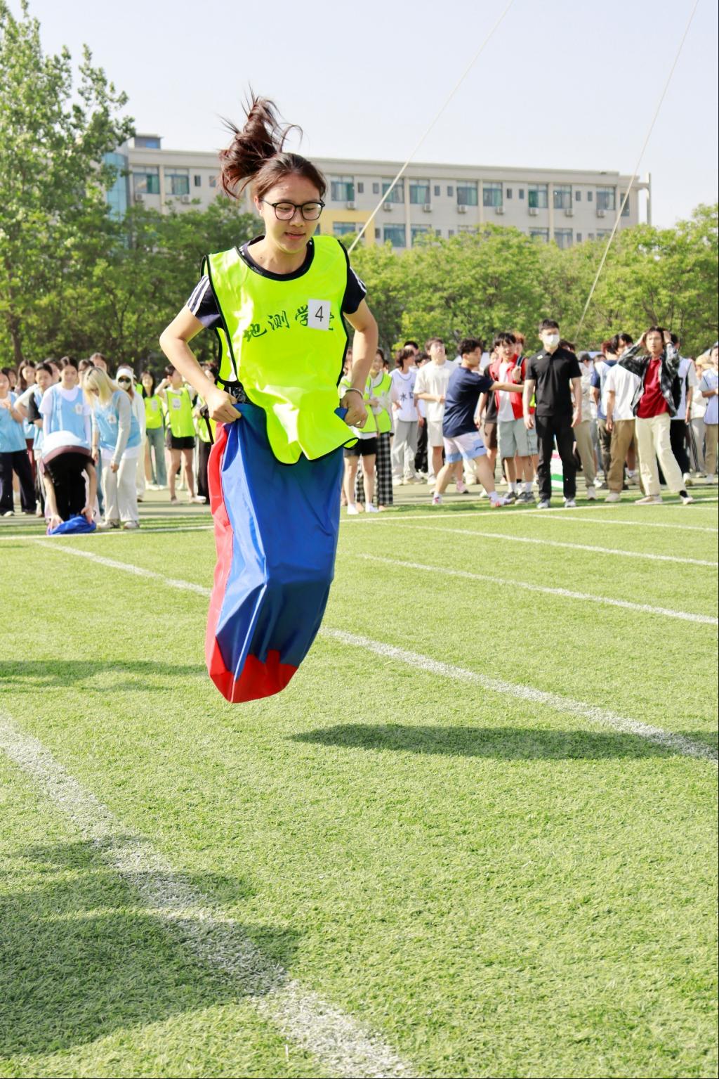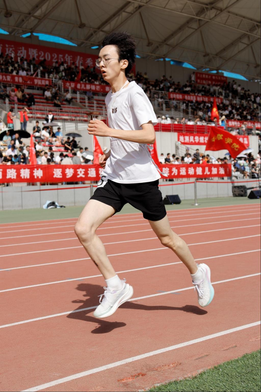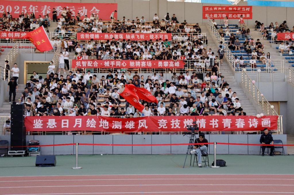 的同学们组成了一片热情的海洋。震耳欲聋的呐喊声,裹挟着穿透云霄的力量,一波接着一波地传向赛场的每一个角落。一声声充满激情的“ 地测!加油!”,更像心灵的纽带,将观众与运动员紧密相连,激励着每一位地测学子奋勇向前。