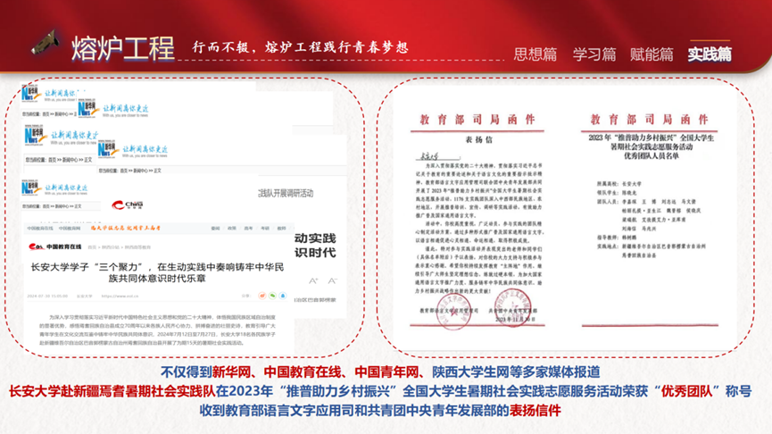 赴新疆焉耆暑期社会实践队还在2023年的“推普助力乡村振兴”全国大学生暑期社会实践志愿服务活动中荣获“优秀团队”称号,收到教育部语言文字应用司和共青团中央青年发展部的表扬信件。