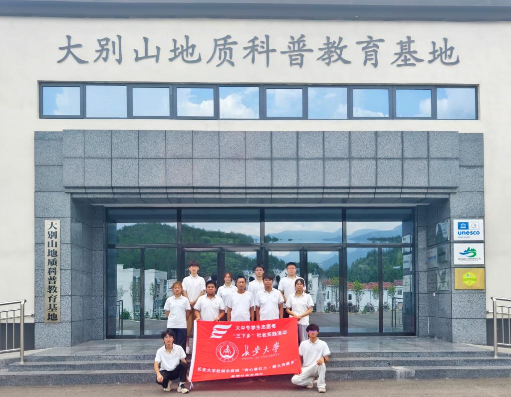 “岩心鉴红土・薪火传麻乡”暑期社会实践队赴张家畈镇黄市坳村开展参观学习和实践调研活动,村支书余朝晖带领实践队员参观大别山地质科普教育基地并作调研指导。