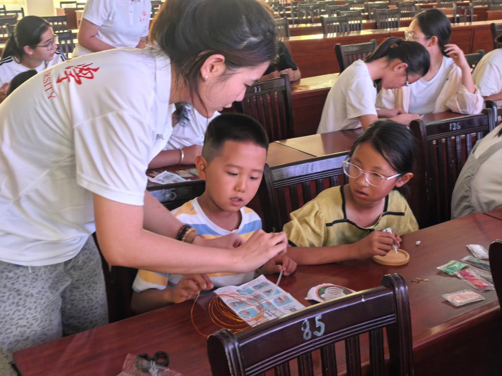 赴新疆焉耆“丝路育才传薪火·推普同心绘华章”暑期社会实践队于2025年7月16日,在焉耆县第一中学,成功举办了以“丝绸之路”为主题的非物质文化遗产“掐丝珐琅”技艺体验活动。焉耆作为古丝绸之路上的重要节点,曾见证东西方文明交融互鉴,承载着中华民族多元一体格局的历史记忆。此次活动,旨在依托丝路文化纽带,通过传统工艺的实践教学,让青少年亲身体验掐丝珐琅这项经丝绸之路传入并本土化的艺术瑰宝,增强对中华优秀传统文化的认同感与自豪感,深刻理解各民族交往交流交融的历史传承,进一步铸牢中华民族共同体意识。