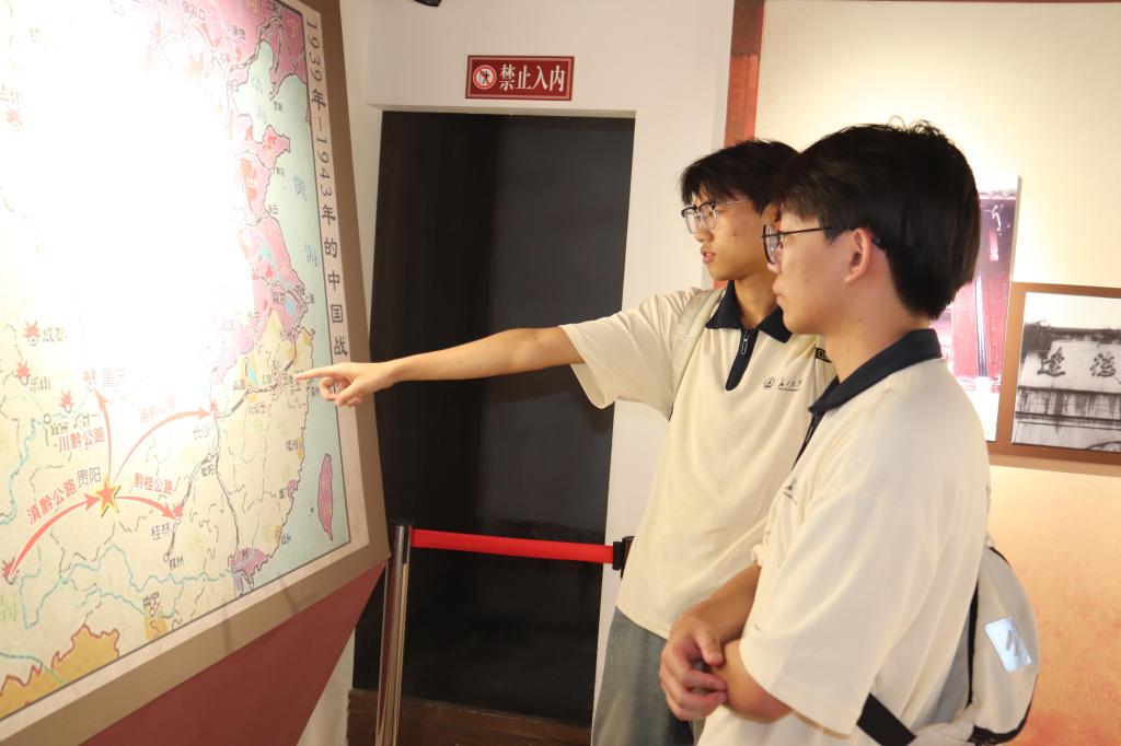 追寻的足迹延伸至贵阳市,队员们探访八路军贵阳办事处旧址。在正房展厅,长桌、路线地图、铁皮马灯将队员们带回1938年至1941年的岁月。队员们了解到,办事处工作人员联络汉族、苗族、布依族等各族群众,建立秘密运输网络,转运药品、布匹等战略物资200余吨,支援前线抗战。这段历史诠释了中国共产党继承长征精神,体现各族人民团结一心、抵御外侮、争取民族独立的伟大力量。这是长征精神“依靠人民、团结奋斗”内核的闪耀,是中华民族共同体意识的鲜活例证。