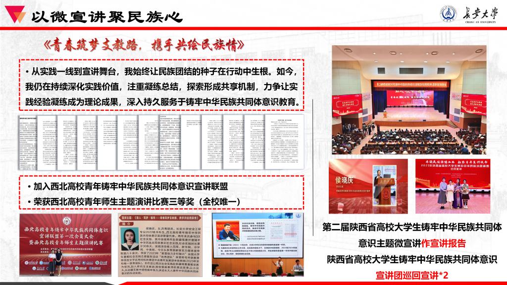 到陕西高校,再到西北区域,她让“铸牢中华民族共同体意识”的理论在具体可感的叙事中深入人心。这些荣誉既是对她宣讲能力的肯定,更是对其“以真故事传真理”求真精神的精彩印证。