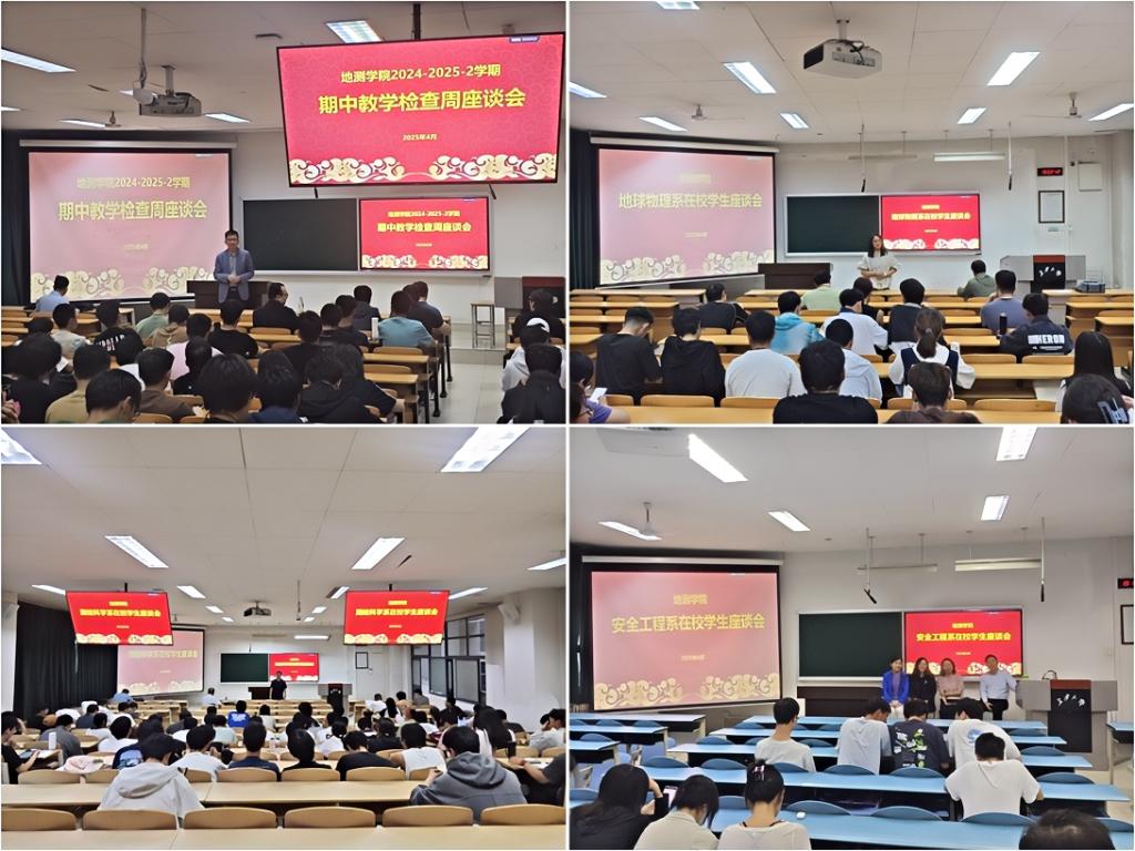 座谈会按教学单位分场进行。地质工程系座谈会上,系副主任熊炜深入介绍专业基本情况与前景,向学生寄予厚望,教师代表引导学生积极反馈教学、管理等方面意见,耐心解答学习与生活问题,鼓励学生做好学业规划。地球物理系座谈会中,系主任包乾宗充分肯定学生参与课堂管理的热情,针对学科特色、就业等疑问详细作答,围绕课堂教学与创新创业展开交流,鼓励学生提升综合能力。测绘科学系座谈会上,系副主任舒宝帮助分析专业考研与发展趋势,教师代表引导学生注重创新实践,解读了学业相关规定。安全工程系座谈会里,系副主任屈璐详细介绍专业行业特色,教师代表就实习、考研、就业等问题给予专业建议,鼓励学生主动学习、独立思考。现场师生互动热烈,学生踊跃发言,提出诸多建设性意见。