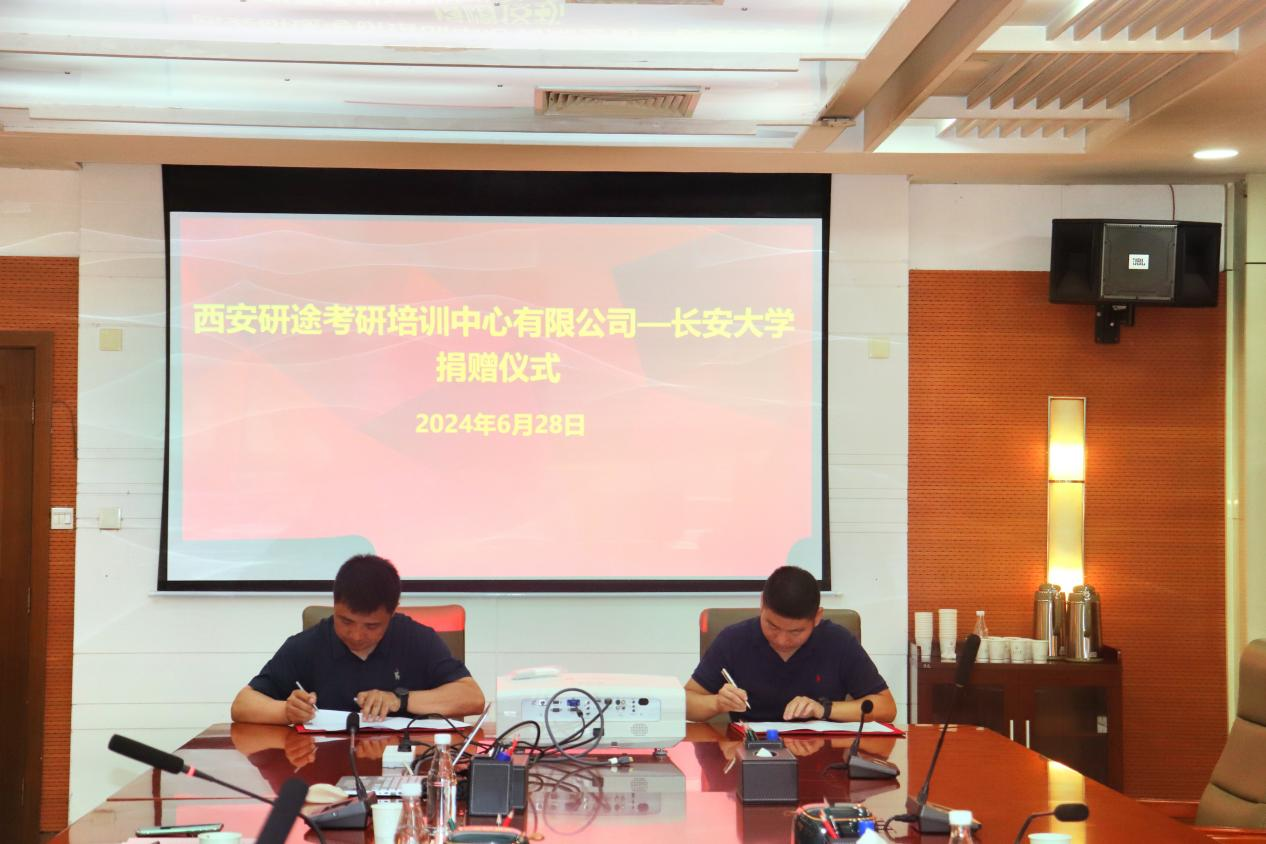 “研途”助学金捐赠签约仪式在北校区北辰行政楼会议中心第二会议室举行。西安研途考研培训中心有限公司总经理李翔翔、校办主任唐美伦、研途考研长大校区校长白磊乐,jojo漫画